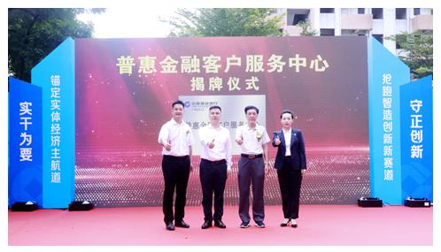 我会谢沛森秘书长受邀参加本次活动,并与市地方金融监管局法规处李有生处长、区科工商信局黎润如副局长、建行番禺支行马田副行长一起上台,为该行“普惠金融客户服务中心” 揭牌。